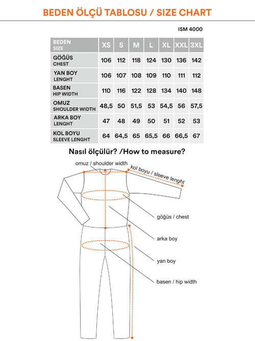 • Omuzlar, kollar ve paçalarda 50 mm reflektif bantlar