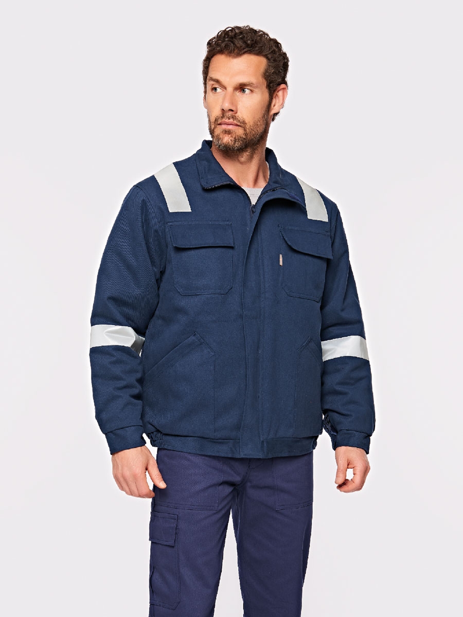Reflektörlü kışlık mont, iş kıyafetinin üzerine rahatlıkla giyebileceğiniz tarzda ve rahat formdadır. %100 pamuk kalın gabardin dış yüzeyi ve dolgulu kapitoneli iç yapısıyla kuru ve soğuk çalışma ortamlarında kullanım için uygundur.