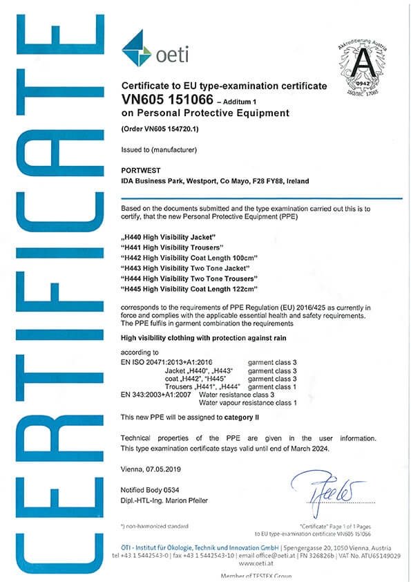 Sertifika: ANSI/ISEA 107-2015 TYPE R CLASS 3